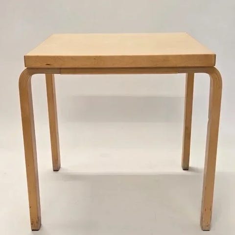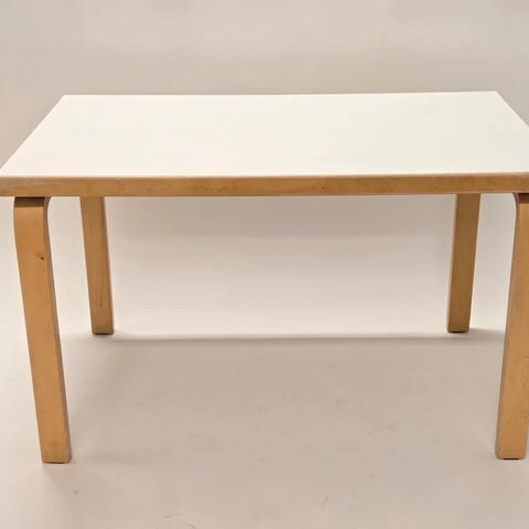 Artek 81A pöytä, koivu. Pöydässä on runsaasti kulumaa. Suunnittelija Alvar Aalto.