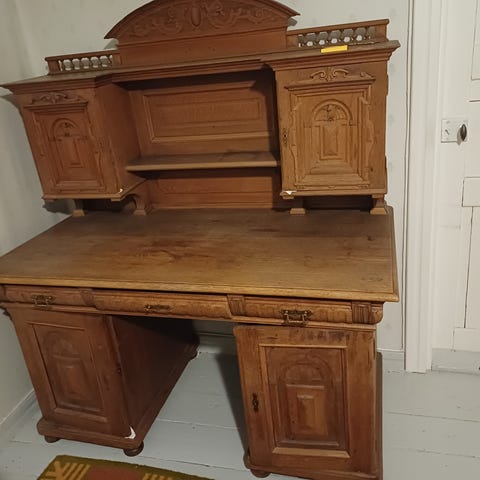 Antiikki tyylinen kirjoituspöytä nahka kannella