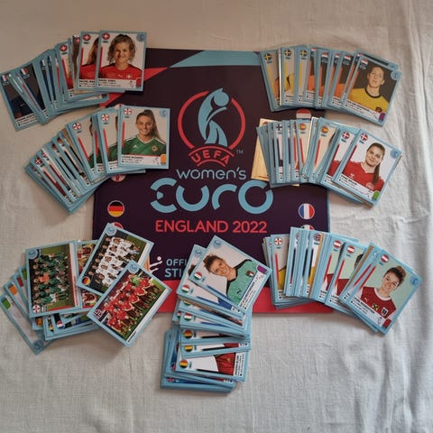 Sisältää tarra-albumin ja kaikki 244 tarraa liimaamattomina.