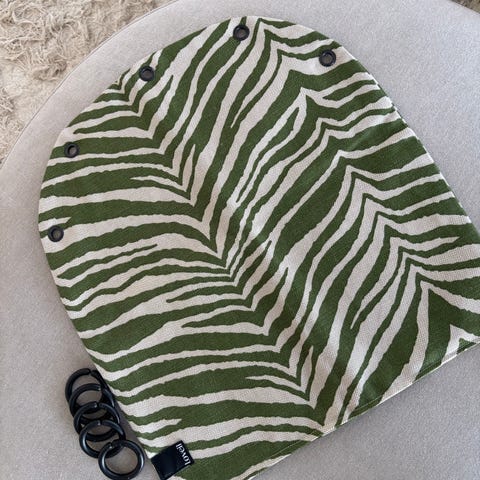 Itse tehty musta vaunuverho. Etupuoli teddykangasta. Alareunaan voi halutessaan kiinnittää lisärenkaat tai narut. Mukana AddBabyn mustat renkaat, 5kpl.
