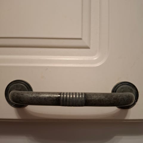 Pisla antiikkimessinkiset vetimet, uudet avaamattomassa paketissa.
