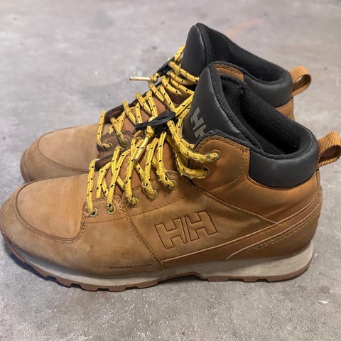 Helly Hansen vaaleanruskeat nahkakengät koossa 39. Sisämitta n. 26cm. Olleet paljon käytössä ja kengissä erilaisia käytön jälkiä. Mielestäni vielä ihan käyttökelpoiset!