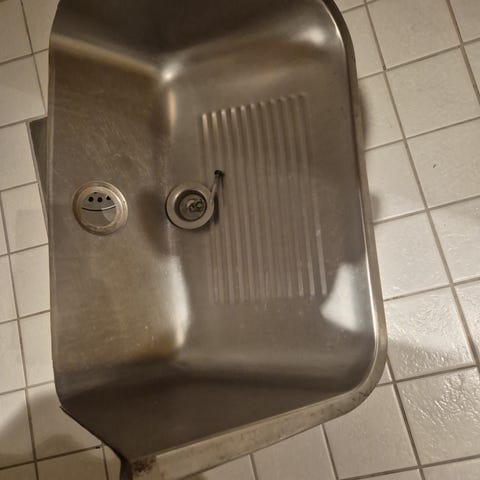 Metallinen pyykin kuivausteline, hieman taipunut mutta kestää kevyttä käyttöä