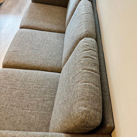 2-3 istuttava beige/kermanvärinen sohva, jossa konepestävät päälliset. Pohjasta on irronnut pari niittiä, jotka olen korjannut nastoilla ja istuinosaa suojaava harso on kulunut puhki (ks. kuvat), mutta nämä viat eivät vaikuta sohvan ulkonäköön tai istumismukavuuteen. Muuten sohva on siisti ja hyvässä kunnossa. Sohva myydään koottuna, mutta sen voi myös purkaa osiin. Runko metallia. Kaikki päälliset on pesty koneessa kuvien ottamisen jälkeen. Meillä ei ole lemmikkieläimiä. Mieluiten nouto Herttoniemestä, mutta korvausta vastaan toimitus Helsingin sisällä on mahdollinen. Tarjoa!