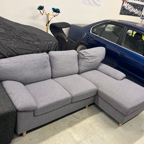 Annetaan harmaan värinen kulmasohva. Ensimmäiselle hakijalle. Haku tänään. Omasta takaa kuljetus ja kantajat sohvalle.