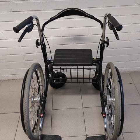 Tyke mauno rollaattori on hyväässä kunnossa. Mauno on varustettu myös tukevalla, kiinteällä korilla, jossa tavarat kulkevat helposti mukana maks. 9kg.