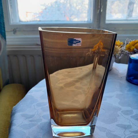 Myydään kaunis, ruskea Nuutajärven Purje- maljakko.