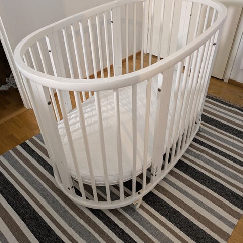 Myydään valkoinen Stokke sleepi + mini osat sisältävä pinnasänky sekä sängyn tarvikkeet.
