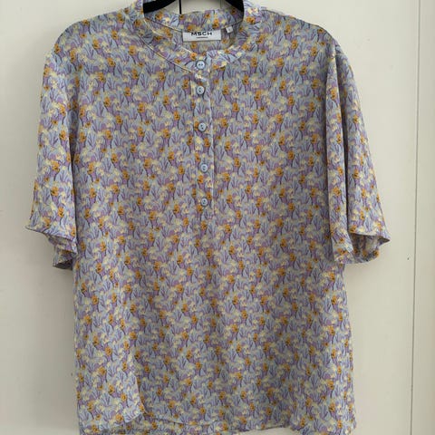 Todella kaunis Mos Moshin paitapusero. Materiaali viskoosi. Kokolapussa koko L, mutta menee myös M-kokoiselle. Mitat kainalo -kainalo 56 cm, olka-helma 62 cm. Suora malli. Helmassa sivulla halkiot.