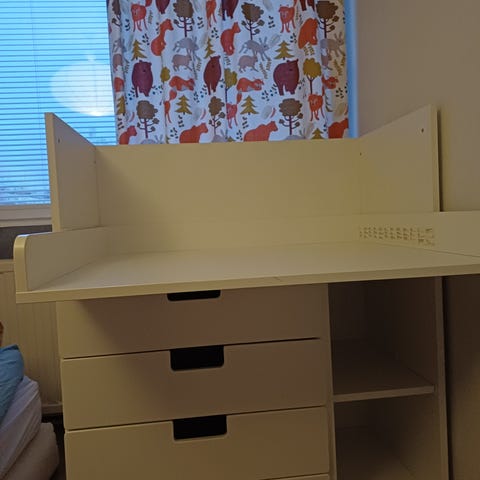 Myydään vanhan mallisesta Ikean Hemnes- lipastosta tuunattu hoitopöytä. Huom! Mitat eri, kuin uudessa mallissa.
