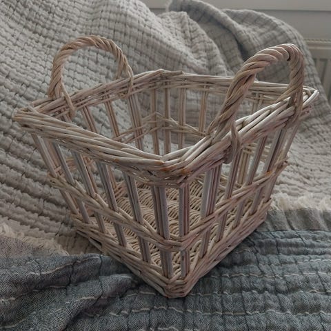 10 cm korkea ja 17 cm leveä puunvärinen kori. Kantokahvalla. Pohjalla muovi. Voi vaikka istuttaa kukkasen. Nouto.