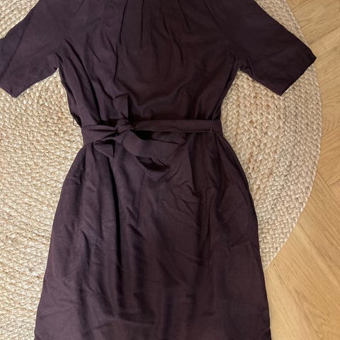 Edessä isot taskut ja vyötäröllä solmittava vyö. Materiaali 60 % villaa, 40% lyocelliä.