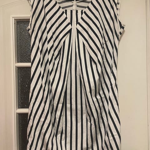 Marimekon tummansini-valkoraidallinen hyväkuntoinen Kiamila-paita, koko XL, valmistettu lyocell-materiaalista.