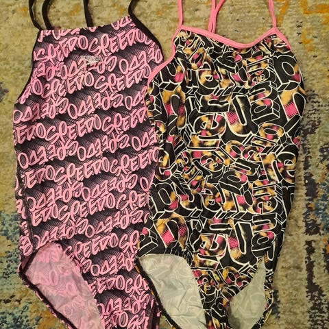 Kilpauimarin uikkaripaljoudesta treeniuikkareita eteenpäin. Koko 164, ehkä piirun pienempää kokoa. Ei vuorta. En löydä käytönjälkiä (nypyä tms). Käytetty jokusissa treeneissä.