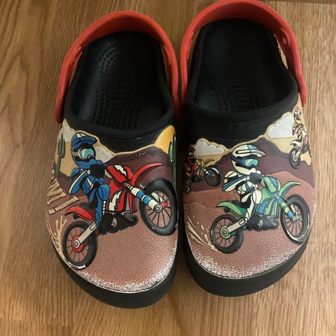 Crocs vaaleanpunaiset sandaalit. Valmistajan koko J1, en mittaile (koon voi tarkistaa valmistajan kokotaulukosta).