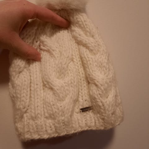 Kuvan mukainen pipo. Villa 50%, akryyli 50%.