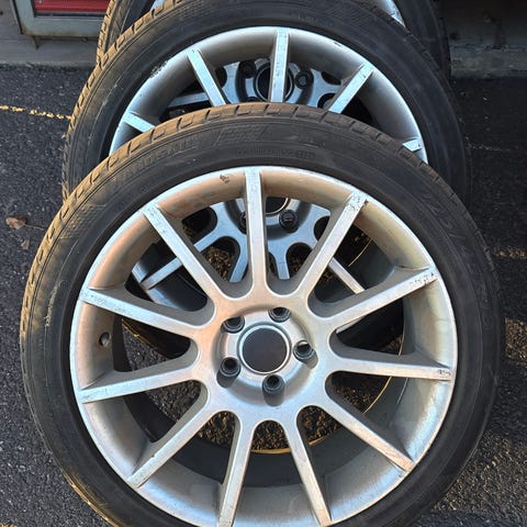 Muuten hyväkuntoiset alkuperäiset vanteet, mutta yhdessä vanteessa halkeama. Täytyy korjata. Korjaus about 70-100€