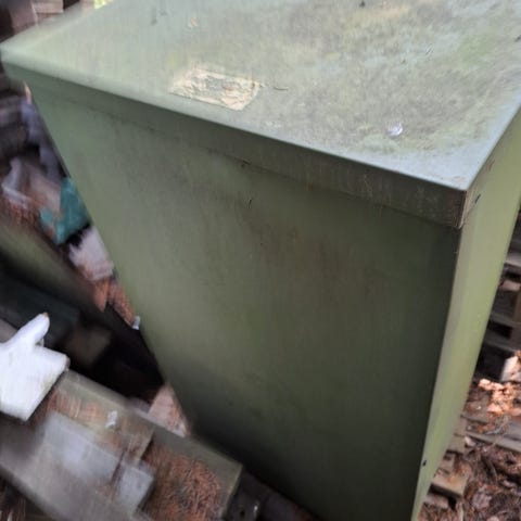 Roskis ylimääräisenä. Halkeama ja likainen, mutta hyvä roskis viedä seuraavalle.