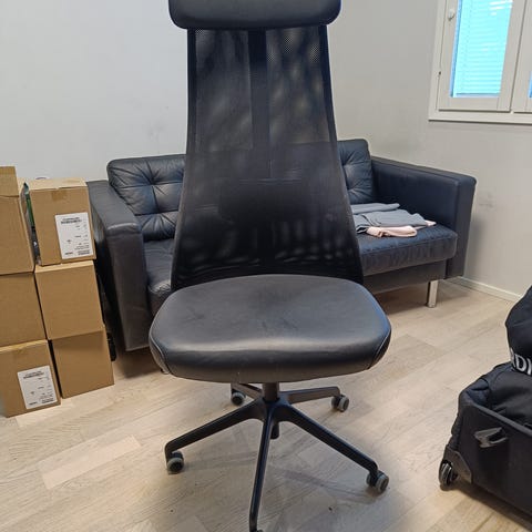 Ikean Örfjäll työtuoli. Mitat yms löytyy Ikean sivuilta