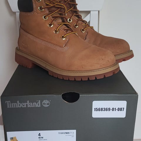 Timberland Waterproof nilkkurit, koko 36, nupuppinahkaa. Kengät ovat vaaleanruskeat ja olleet yhden talven käytössä lapsella. Kärkissä ”katu-uskottavuutta” eli kolhua ja raapamaa. Ei ole kokeiltu hioa mokkakivellä, koska jäivät pieniksi eli tästä halvalla käytetyt talvikengät seuraavalle käyttäjälle vaikka kakkoskengiksi.