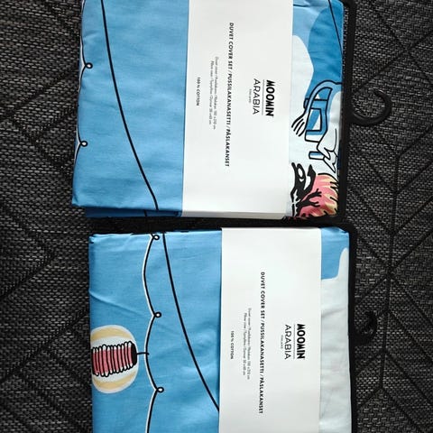 Uusi..sisältää pussilakanan ja tyynyliina.tähän yllätys mukaan. Näitä löytyy 2 settiä. Jos molemmat niin 65e.