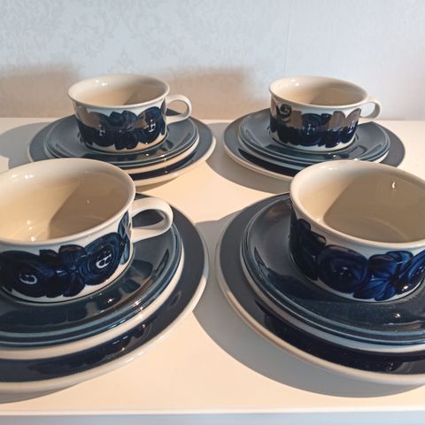 Kupit ja aluslautaset ovat olleet ns. vieraskuppeina ja niitä on vain erittäin harvoin käytetty! Anoppi on kuulemma itse saanut ne joskus lahjaksi! Kupeissa saattaa näkyä joitakin aivan pieniä käytön jälkiä – jos ensinkään!