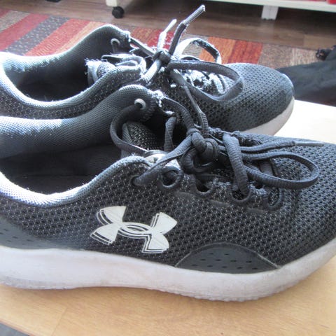 Puma lasten kengät, koko 36, suunnattu pojille. Kengissä on musta väri. Oikeassa kengässä kuvan mukainen ratkeama.