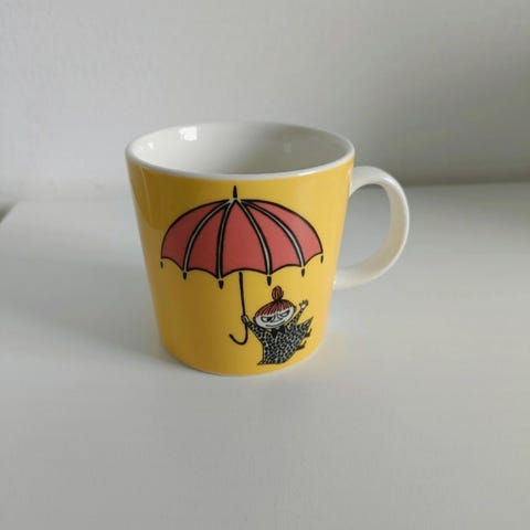 💛 Keltainen Pikkumyy muumimuki. Tuotannossa vuosina 2008–2014.