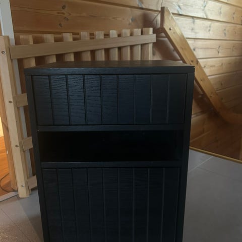 Jyskin yöpöytä yhdellä vatolaatikolla.