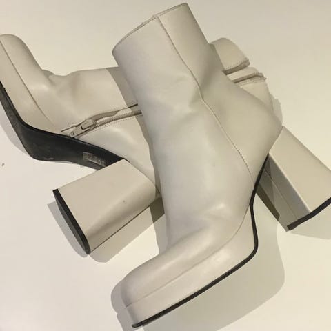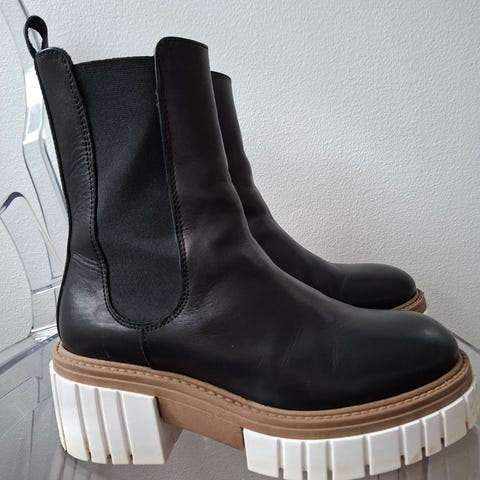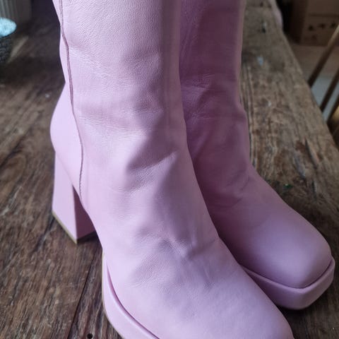 Nuden väriset kiiltonahkaiset nilkkurit, koko 37. Erinomaisessa kunnossa, normaalia käytönjälkeä pohjissa