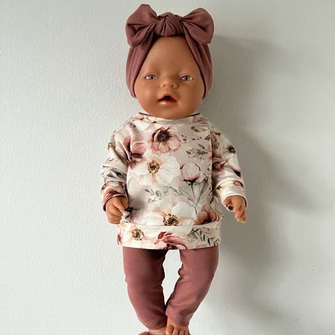 Myyn baby born nuken (43 cm) kukka-kuosisen jumsuitin ja pannan yht. 25 euroa postimaksu (Kirje 5,5 euroa)