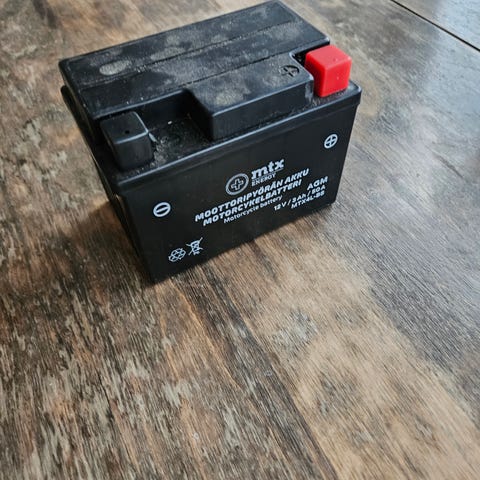Ladattu täyteen älylaturilla. Oli käytössä Honda VFR 1200F moottoripyörässä.