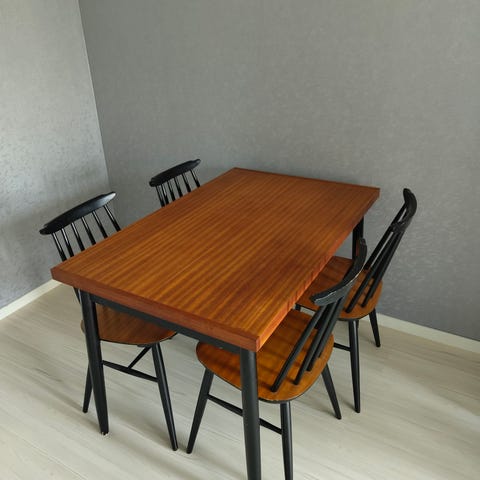 Myydään settinä jatkettava ruokapöytä ja 4 Kurt Hvitsjön pinnatuolia (joiden arvo yksittäin tänä päivänä jo 75 €). Kalusteissa kuitenkin käytön kulumaa, mutta edelleen jykeviä ja asian ajavia. Nouto Tampereen Viinikasta helmikuun aikana 23.2 alkavalla viikolla, 1. krs asunto. Hp. setti 200€, saa tarjota - myydään muuton vuoksi.