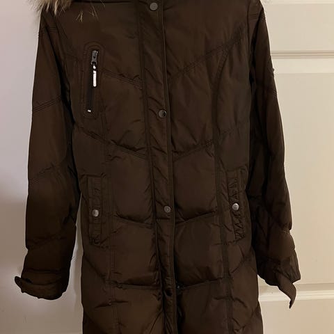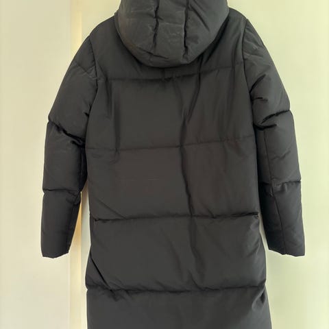 Musta xs kokoinen untuvatakki.