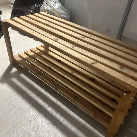 Kevyistä metallitangoista koottava kenkähylly.