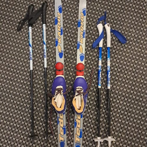 Laadukas Madshus-hiihtopaketti lapselle: Skin-sukset (127 cm) ja sauvat (90 cm)