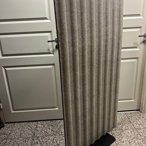 Tarpeettomaksi jäänyt työhuoneen kuvan mukainen kulma kahdesta irtoseinäkkeestä. Isompi pala 80x150cm ja pienempi 80x48cm. Isommassa paikassa leikattu aukko pistorasioille. Mukana myös kiinnitystarvikkeita.