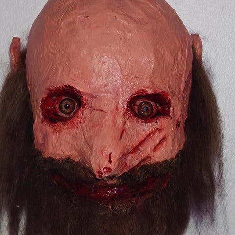 Kunto: Hyvä, kulumaa, patinoitunut pinta, naamiossa vielä selvä tervantuoksu