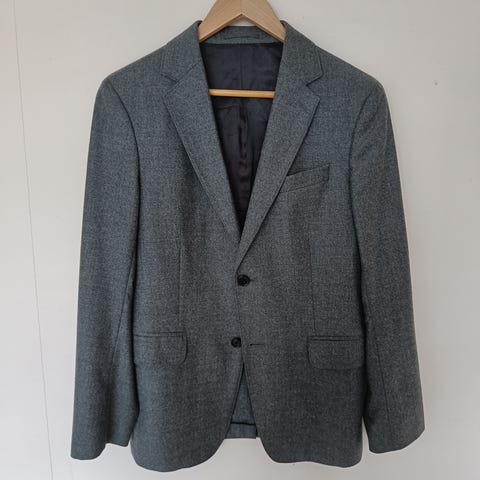 Arketin sininen rento pikkutakki paikkataskuilla. Käytetty hyvin vähän eli kunto on erinomainen. Materiaali 100 % villaa ja vuoritus viskoosia.