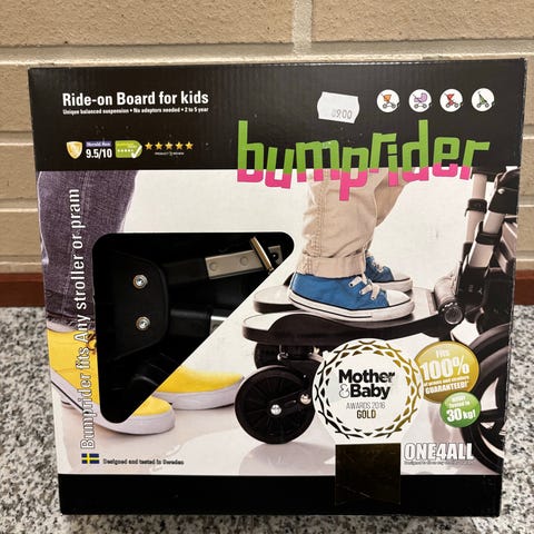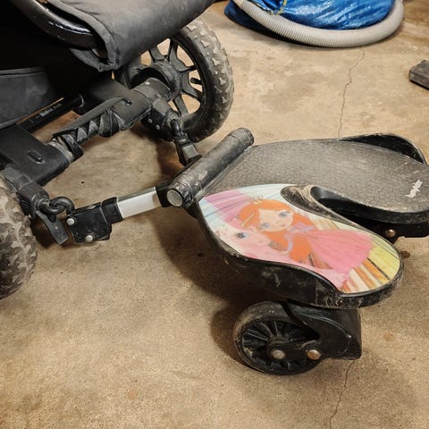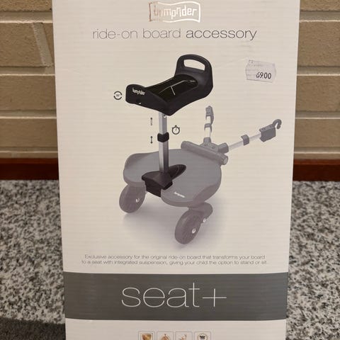 Seisomalauta lähes kaikkiin rattaisiin / vaunuihin, jossa myös istuin-osa, mikä helpottaa pienten väsyneiden jalkojen matkaamista. Ohjekirja mukana. Sopii lahjaksikin, käyttämätön.
