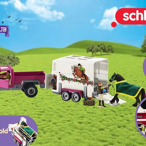 Schleich auto ja traileri. Mukana tulevat tavarat näet viimeisestä kuvasta.