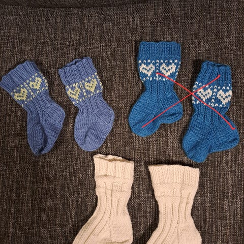 Ehjät villasukat, arvioisin että noin 20-21 kokoiseen jalkaan parhaat. Mitta takareunasta varpaiden kärkeen 12 cm. Nouto Lieto tai toridiili/kirje