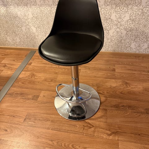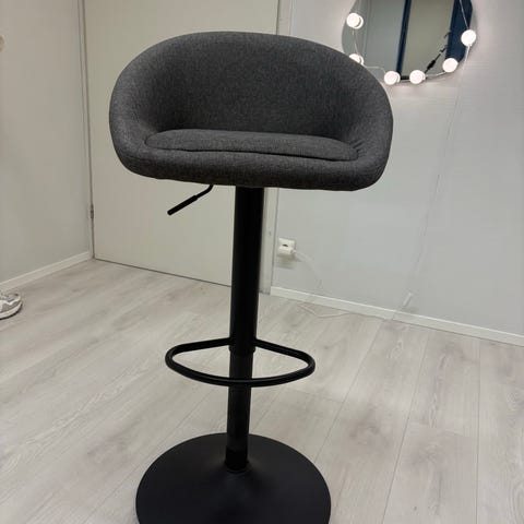 Myynnissä 3 vaaleanharmaa baarituoli. Materiaali: sametti
