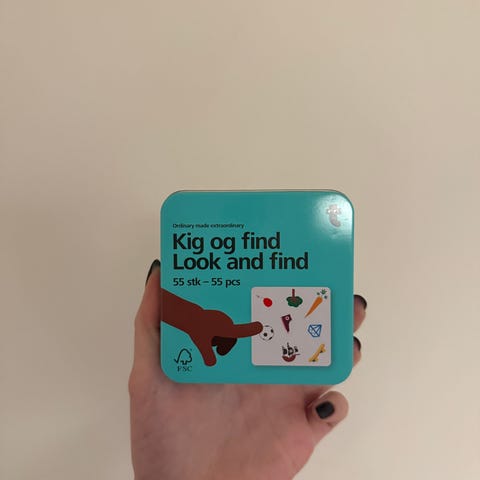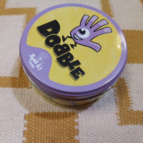 Dobble korttipeli sisältää 55 korttia, joissa on erilaisia symboleja. Pelissä on tarkoitus löytää korteista yhteisiä kuvioita mahdollisimman nopeasti. Sopii 2-8 pelaajalle ja ikäsuositus on 6 vuotta täyttäneille. Peli kehittää tarkkaavaisuutta ja nopeaa havaitsemista.