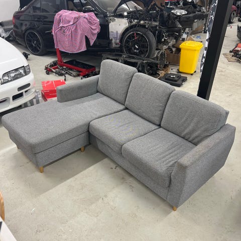 Vasemman kätinen harmaa kulmasohva hakemisen vaivalla. En varaa eli nopein nouto etusijalla. Nouto Tampereen Kalkusta