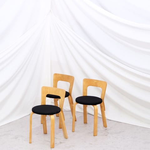 Artekin koko koivu 65 tuolit. Istuinkorkeus on aikuisten korkeus 44cm.