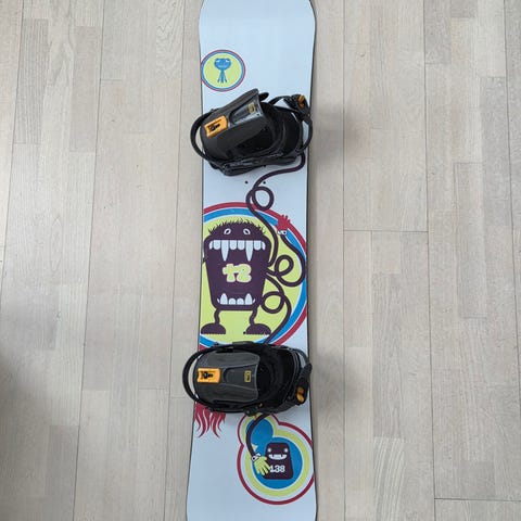 Ride lumilauta, pituus noin 135cm. En löytänyt pituusmerkintää. Käytön jälkiä on, mutta aivan toimiva peli vielä. Toista sidettä "pajoitettu" väärän värisellä osalla. Tällä edullisesti harrastuksen alkuun. Vain nouto.