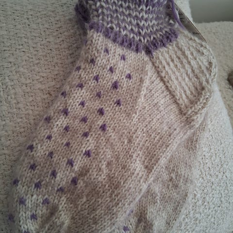 Myydään hyvin vähän käytetyt violetin väriset villasukat. Olen pessyt nämä käytön jälkeen.