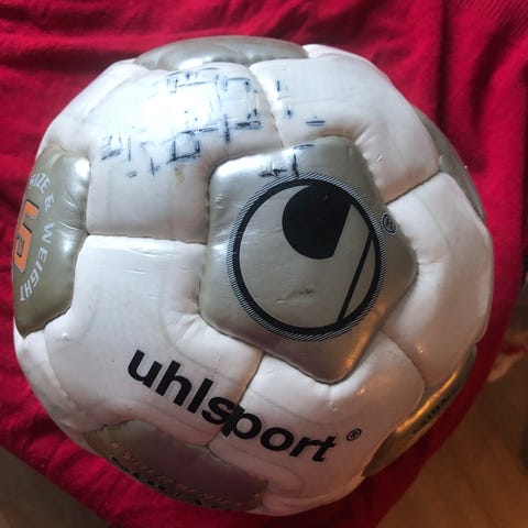 Mini-jalkapallo vuoden 98 mestaruuskisojen ajalta. Ollut lähinnä koristeena ja leikeissä. Lateksinen.