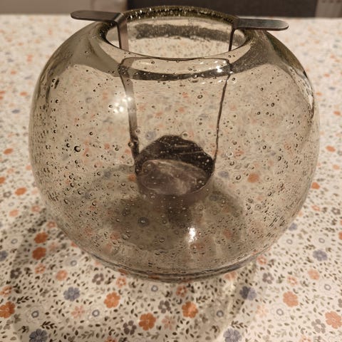 Pentik lyhtymaljakko, metallisella tuikkukynttiläpidikkäällä, Pentik tarra paikoillaan, viininpuna/lilasävyinen, kunto moitteton ja virheetön, ollut lähinnä vitriinikaapissa, nouto Espoonlahdesta KauppakeskusLippulaivan vierestä, myös postituksesta voidaan sopia